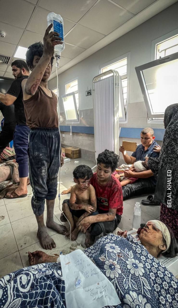- Nahezu jedes Krankenhaus in Gaza ist überlastet, viele Verletzte werden auf dem Boden behandelt, viele Tote in Zelten oder gar Kühl-LKWs vor dem Krankenhaus gelagert.